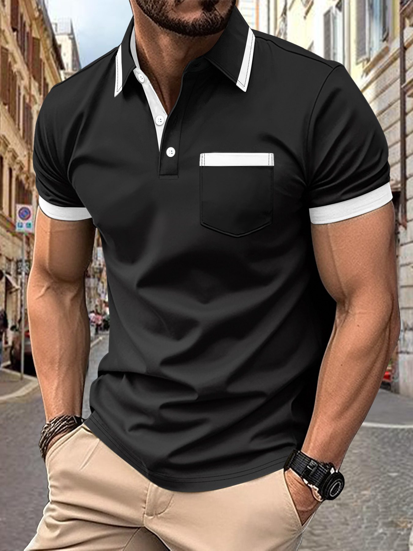 Price range: $50.73 through $52.49Color : Black Neckline And White - Black With Khaki - Khaki Matched With White - White Collar Mouth BlackSize : 2XL - 3XL - 4XL - L - M - XL