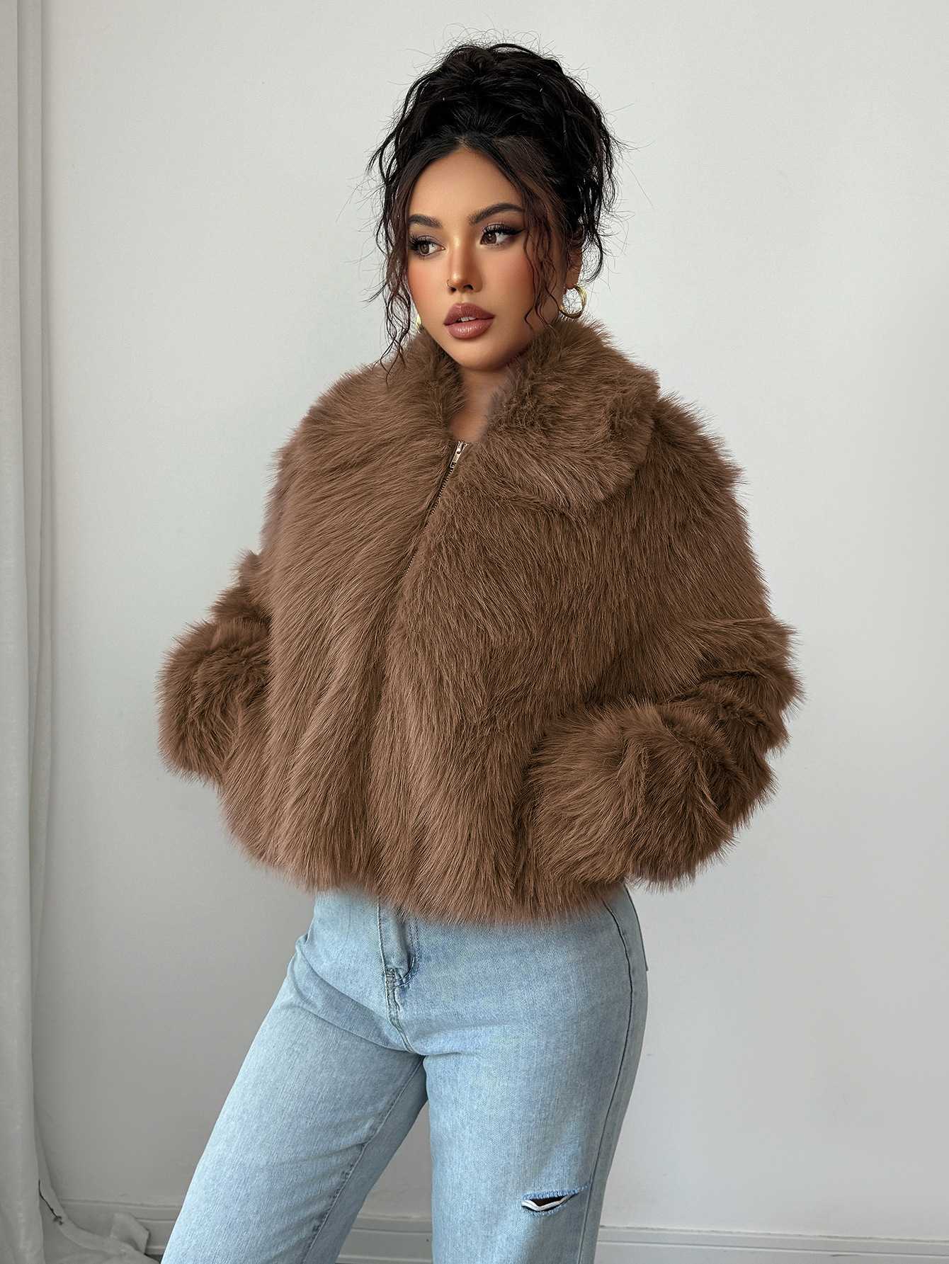 $49.00Color : Apricot - Black Brown Fur Collar - Black Gray Fur CollarSize : 2XL - L - M - S - XL