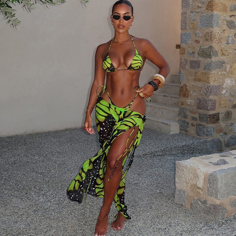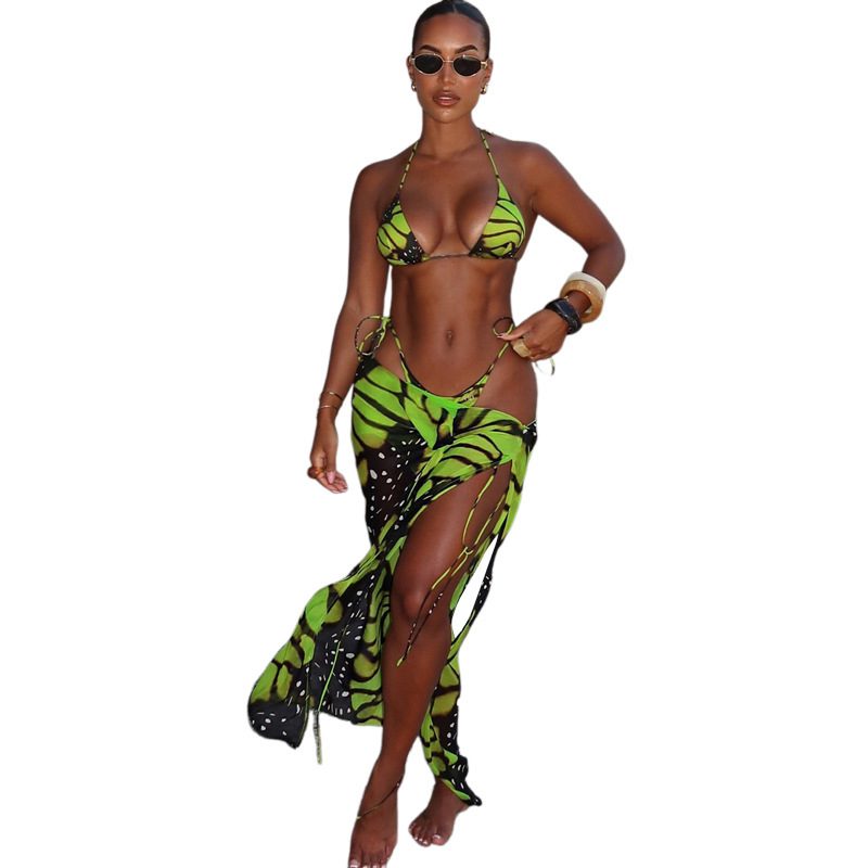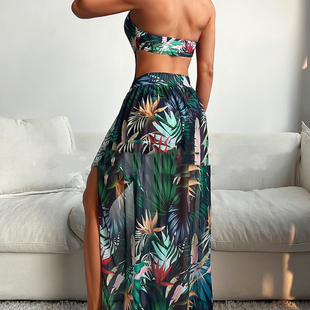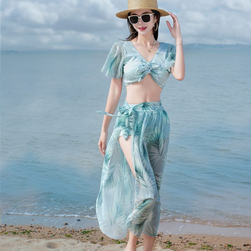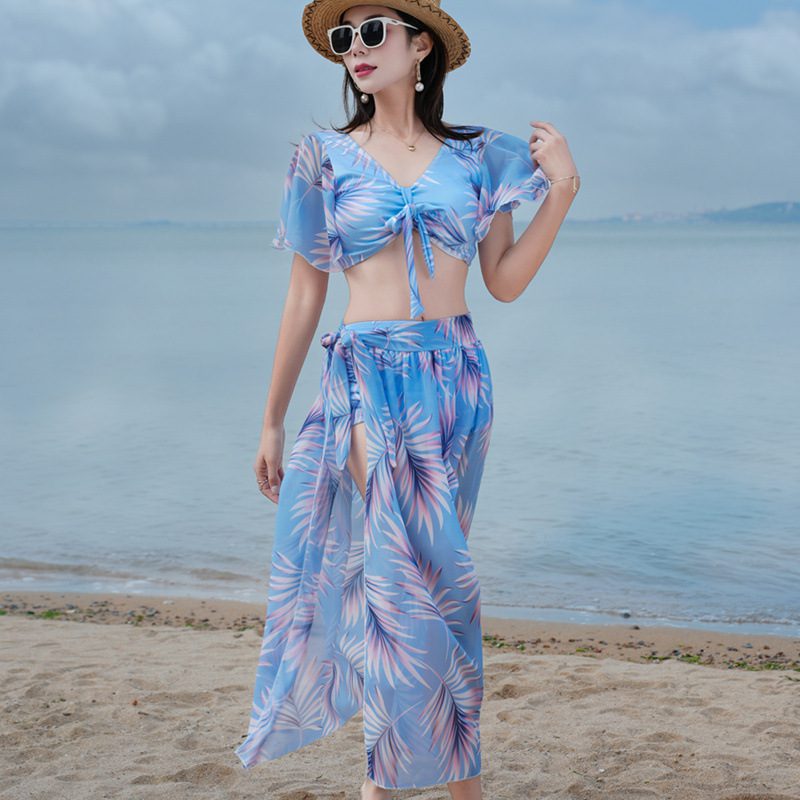 Upgrade your summer style with the Swimsuit Women’s Split Three-piece Bikini. This chic three-piece set includes a bikini top, bottom, and matching cover-up skirt with a stylish split design, creating a flattering and sexy silhouette. Crafted from soft, stretchable fabric with vibrant prints, it offers comfort, durability, and summer-ready style. Perfect for beach vacations, pool parties, or tropical getaways for confident women.