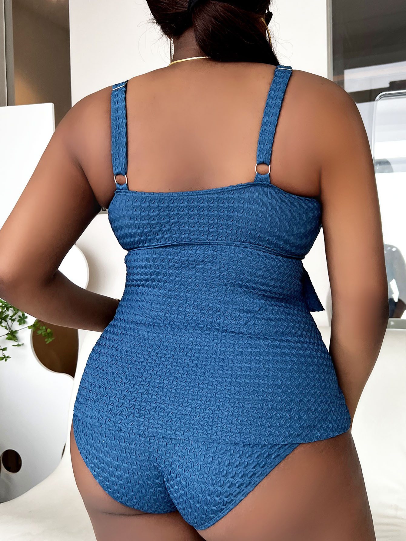 Upgrade your beach style with the Women’s Drawstring Banded Bikini Three-piece Swimsuit. This trendy three-piece set includes a bikini top, matching bottoms, and a versatile cover-up skirt with a stylish drawstring band for a customizable fit. Crafted from soft, stretchable fabric, it offers comfort, durability, and a flattering silhouette. Perfect for beach vacations, pool parties, or tropical getaways, it’s designed for confident and fashion-forward women.