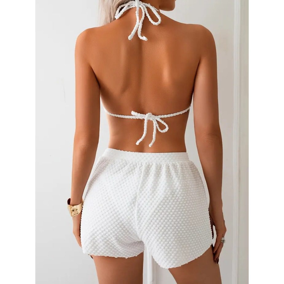 Turn heads this season with the New V-neck Backless Sexy Lace Two-piece Set. Featuring a deep V-neck, elegant backless design, and delicate lace detailing, this set combines sensuality and sophistication. Crafted from soft, stretchable fabric, it offers a flattering fit and maximum comfort. Perfect for beach outings, pool parties, or romantic vacations, this two-piece set ensures confidence, elegance, and Instagram-worthy style.