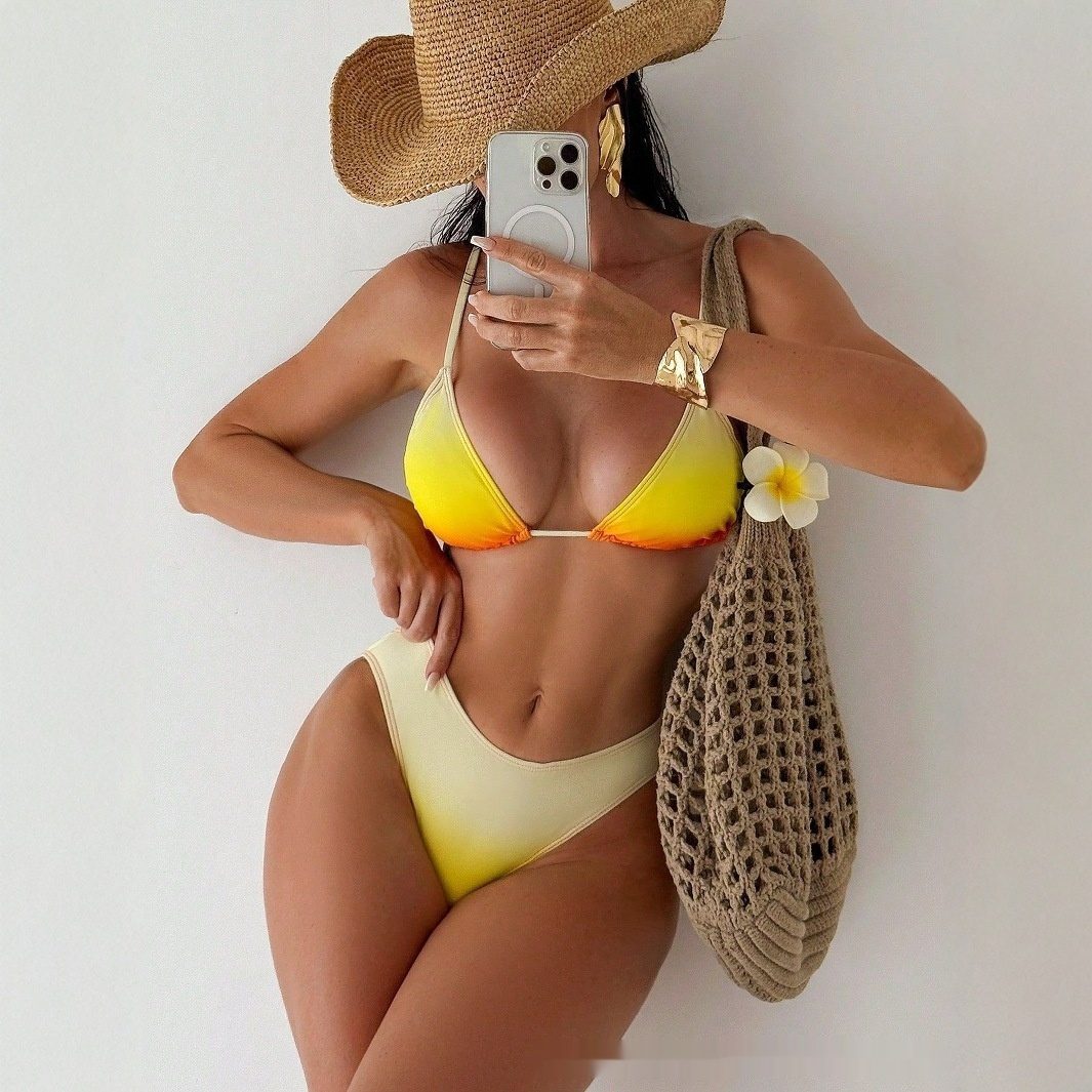 ● Triangle bikinis highlight shoulders and add elegance.
