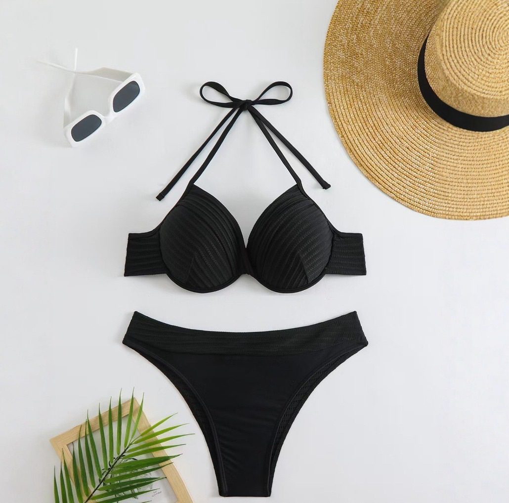 Feel confident and empowered in this Women’s Black Two-Piece Bikini, designed for curves and comfort. This sexy yet supportive bikini set features a flattering top with adjustable straps and a high-cut bottom that enhances your shape. Made for plus-size women who love to show off their style, it’s perfect for beach vacations, pool parties, or summer lounging.