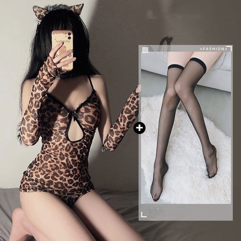 Price range: $9.67 through $55.89Color : Black stockings - Leopard print and stockings - Leopard printSize : One size
