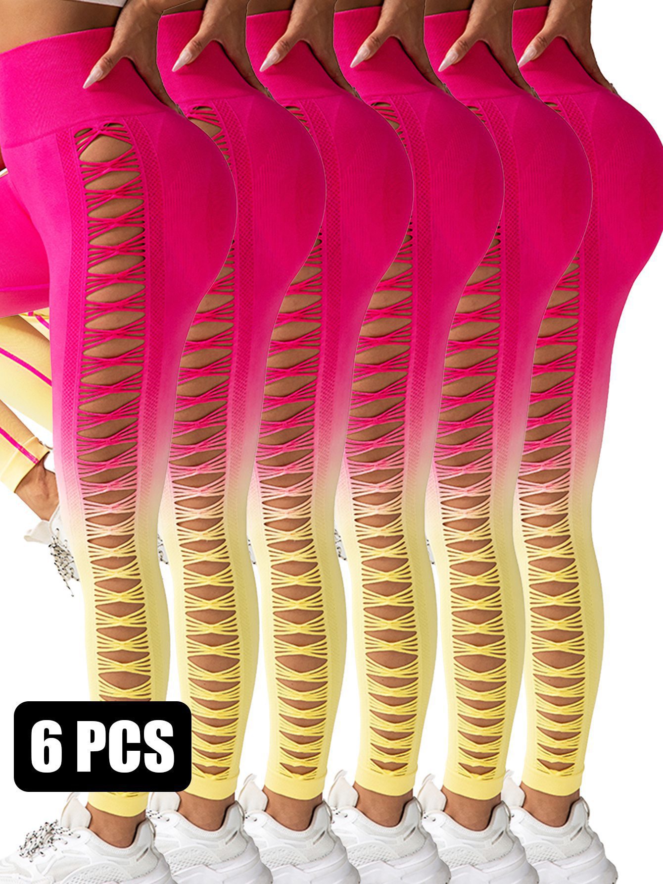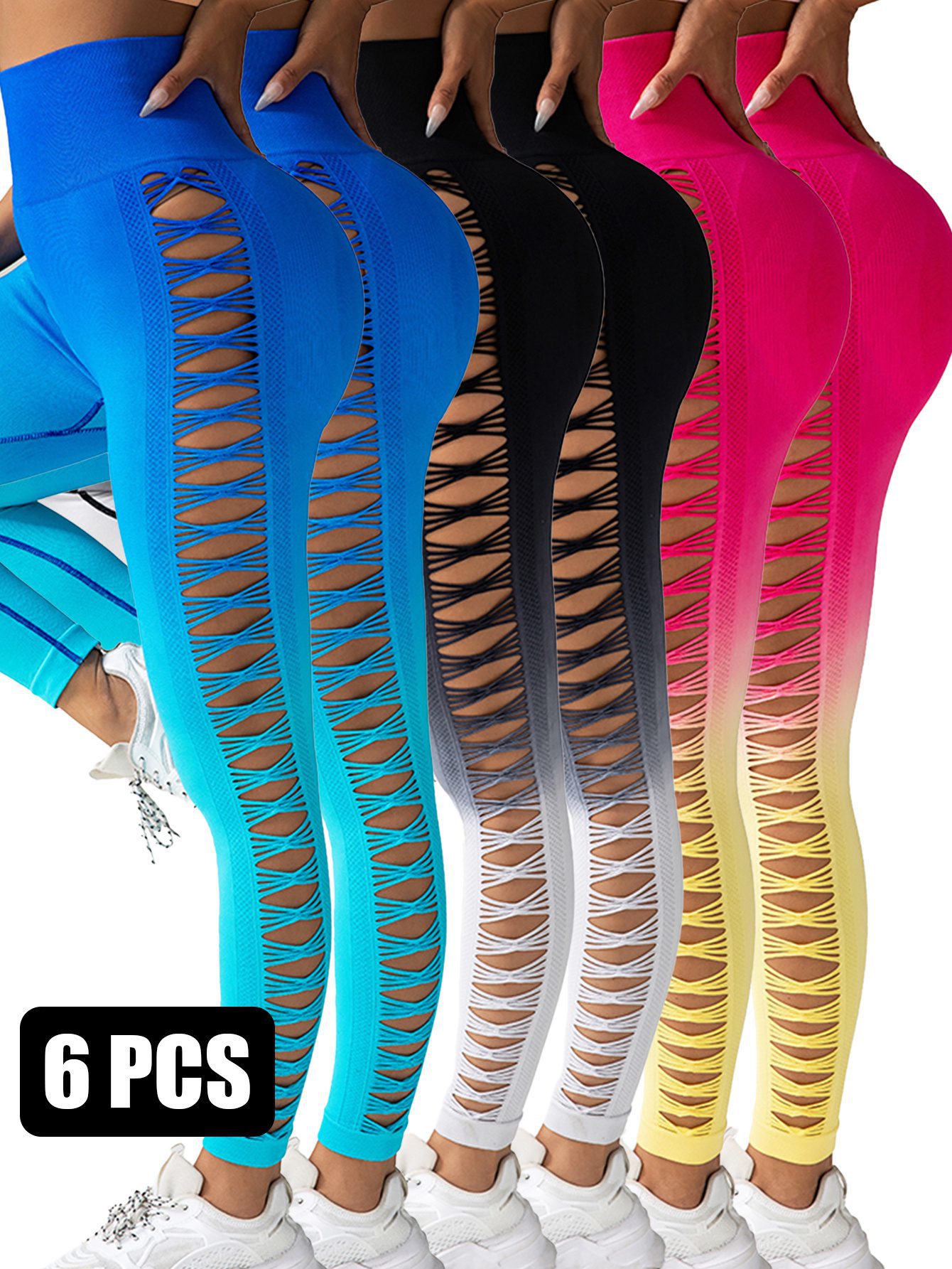 In StockTurn heads with this stunning 6-Pack of Gradient Butterfly Cutout Long Pants, blending bold fashion with breathable comfort. Featuring a trendy gradient color fade and eye-catching butterfly cutouts, these high-waisted leggings are perfect for workouts, dance, or everyday style. Soft, stretchy fabric hugs your curves while offering freedom of movement and all-day wearability.