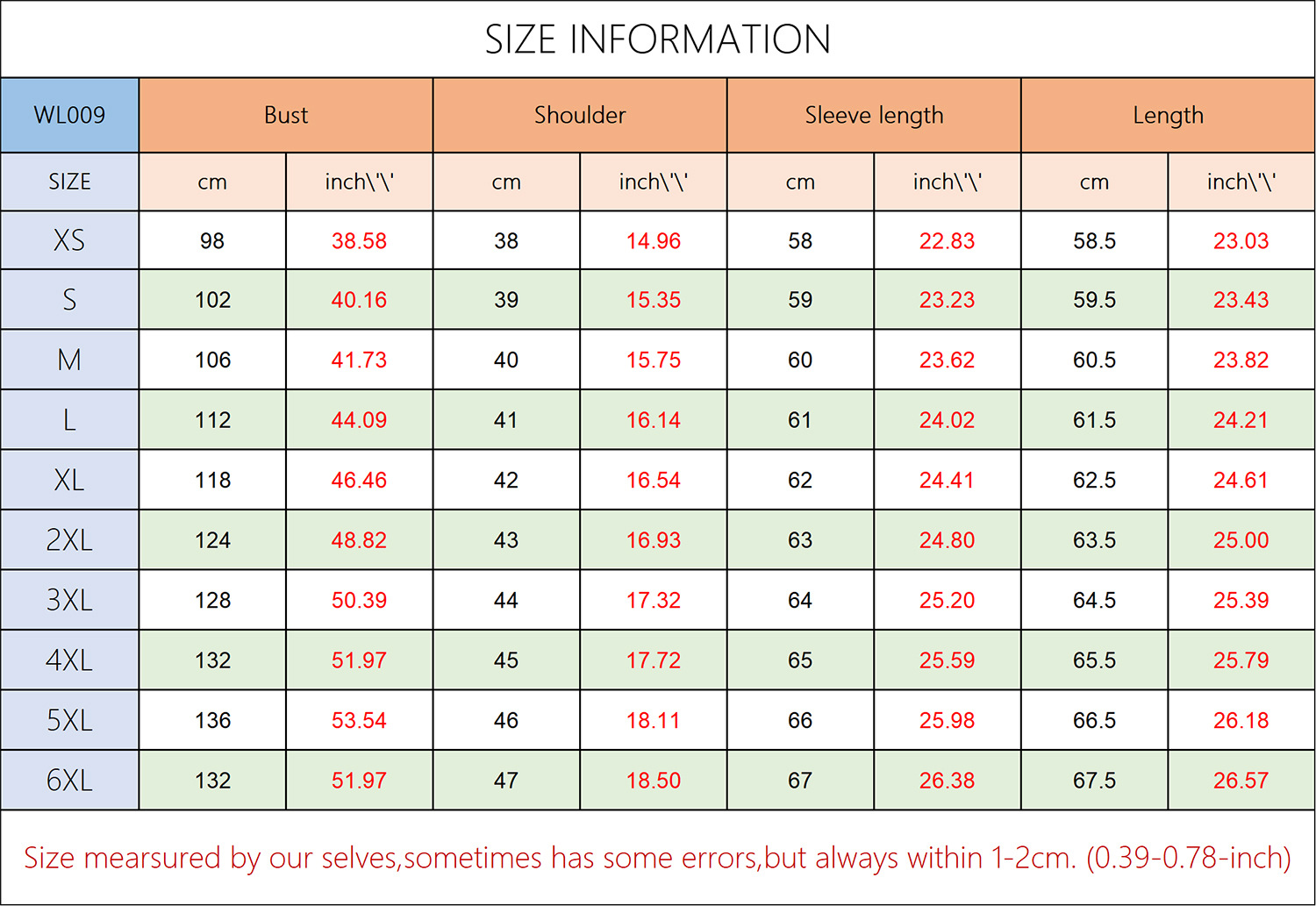 Note: 1. Asian sizes are 1 to 2 sizes smaller than European and American people. Choose the larger size if your size between two sizes. Please allow 2-3cm differences due to manual measurement. 2. Please check the size chart carefully before you buy the item, if you don’t know how to choose size, please contact our customer service. 3.As you know, the different computers display colors differently, the color of the actual item may vary slightly from the following images.