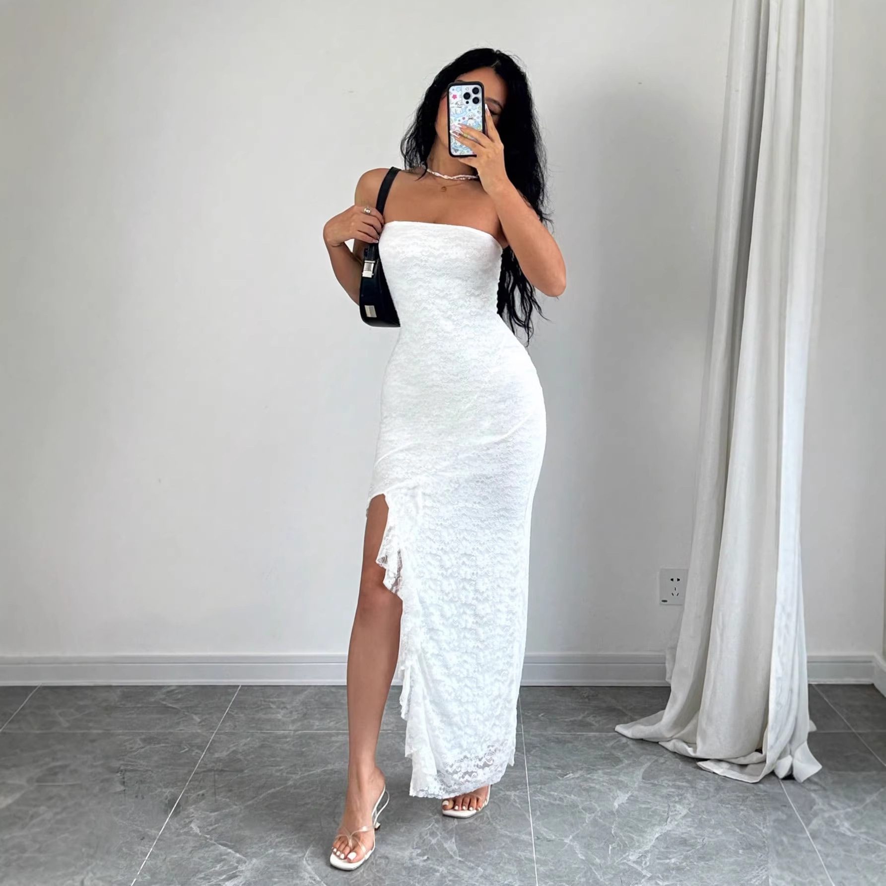 Despite its refined appearance, the Elegant Solid-Color Strapless Slit Dress is easy to maintain. With proper care, the fabric retains its texture and color, ensuring long-term use. Its durable stitching and quality materials make it suitable for repeated wear without losing shape or elegance.