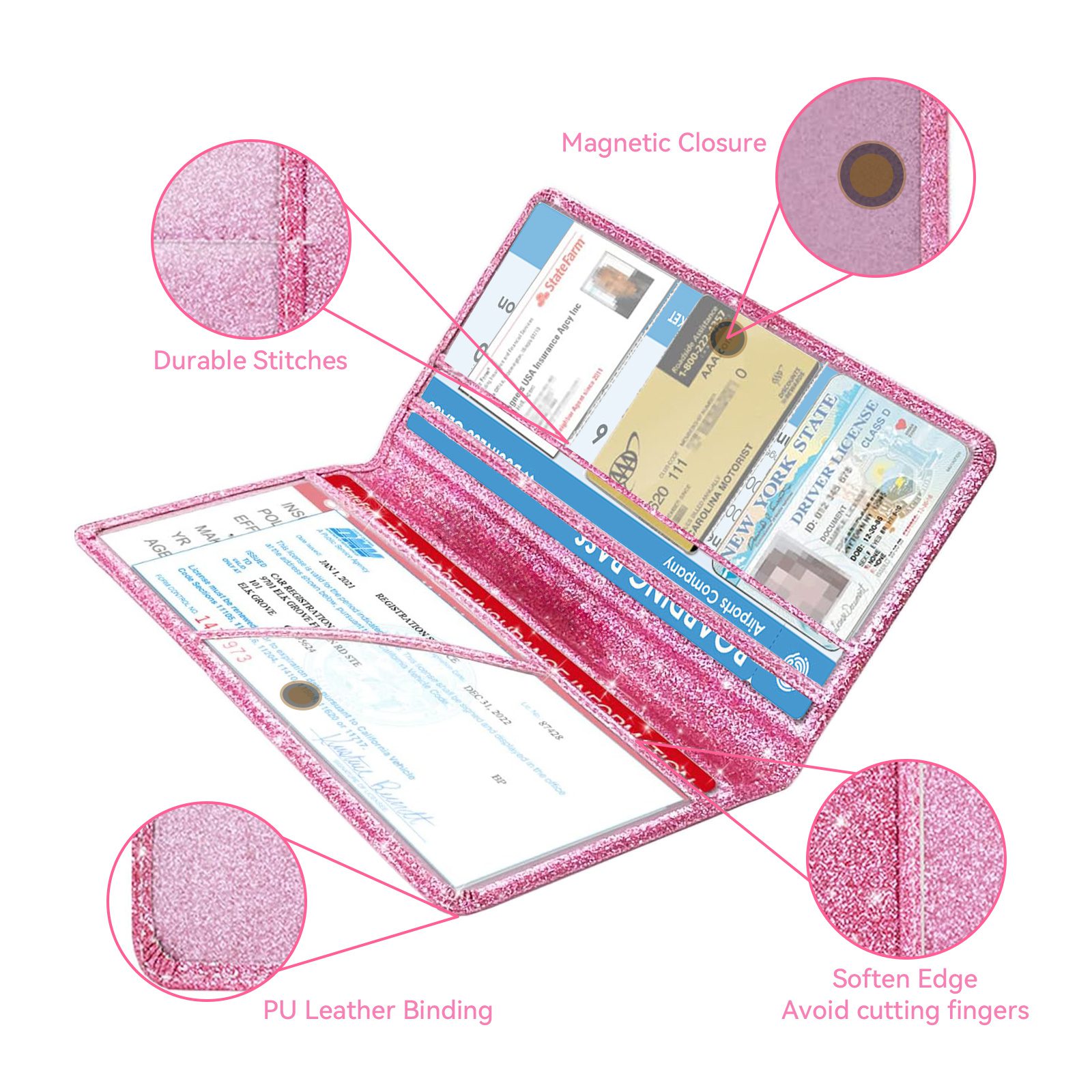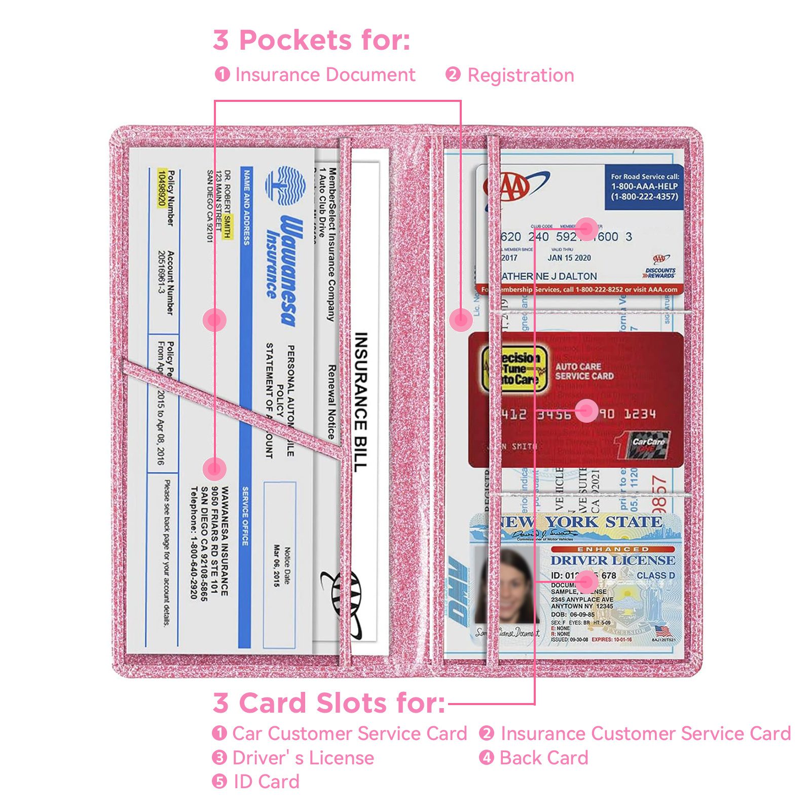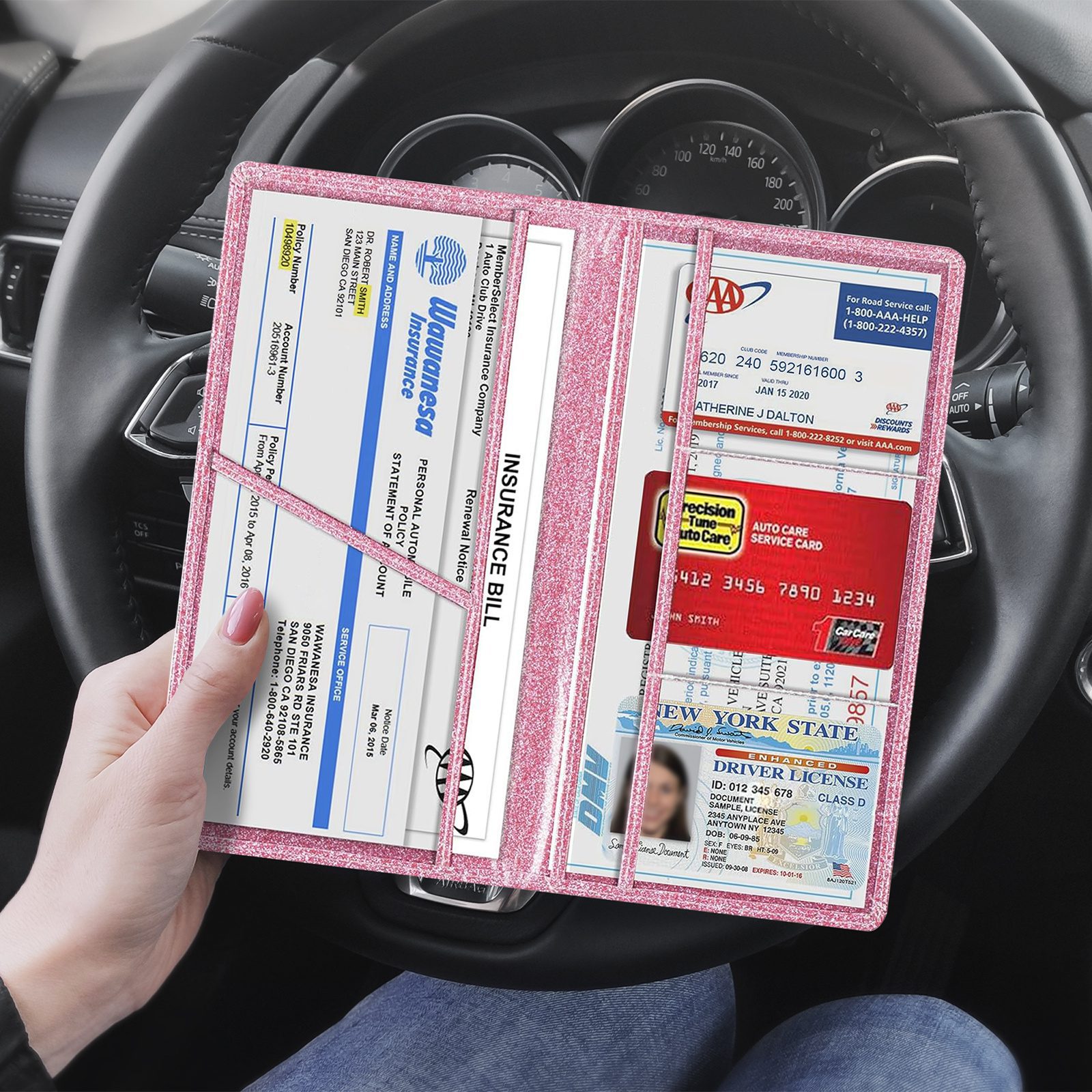 Insurance Document Card Holder In Rose Gold And Black