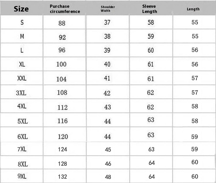 Size: S,M,L,XL,2XL,3XL,4XL,5XL,6XL,7XL,8XL,9XL