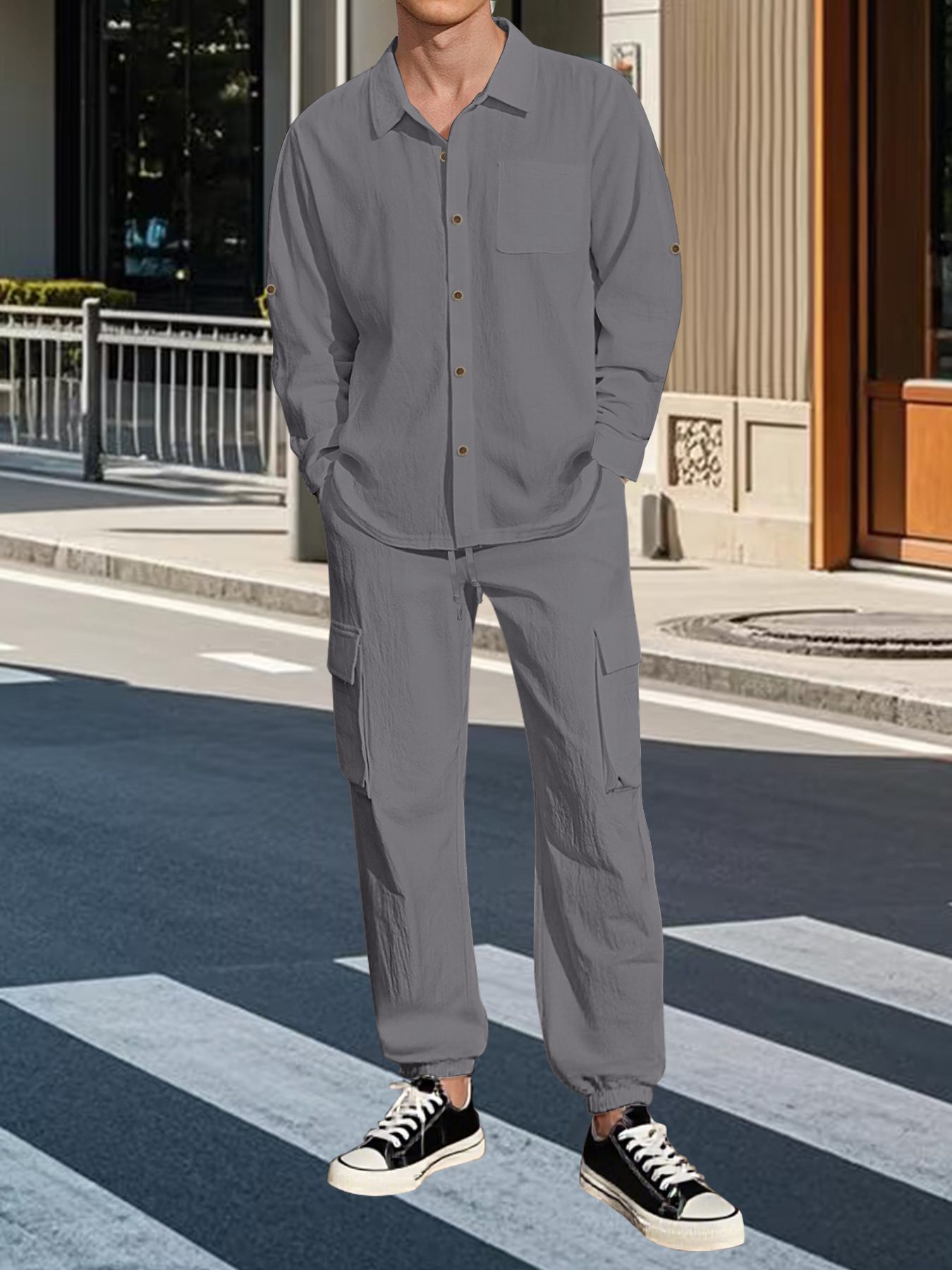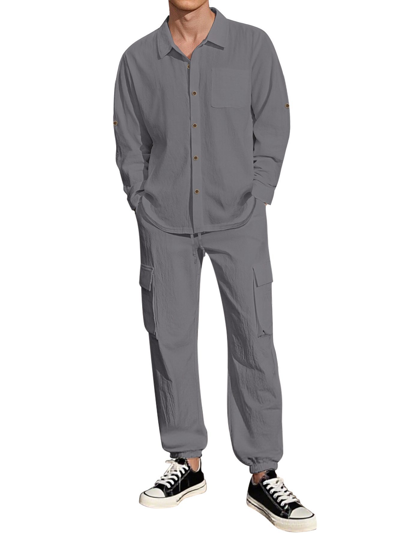 68 reviews for Long Sleeve Lapel Linen Shirt Overalls Suit