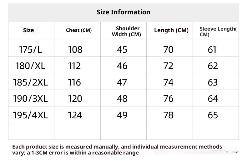 | Size | 2XL, 3XL, 4XL, L, XL |