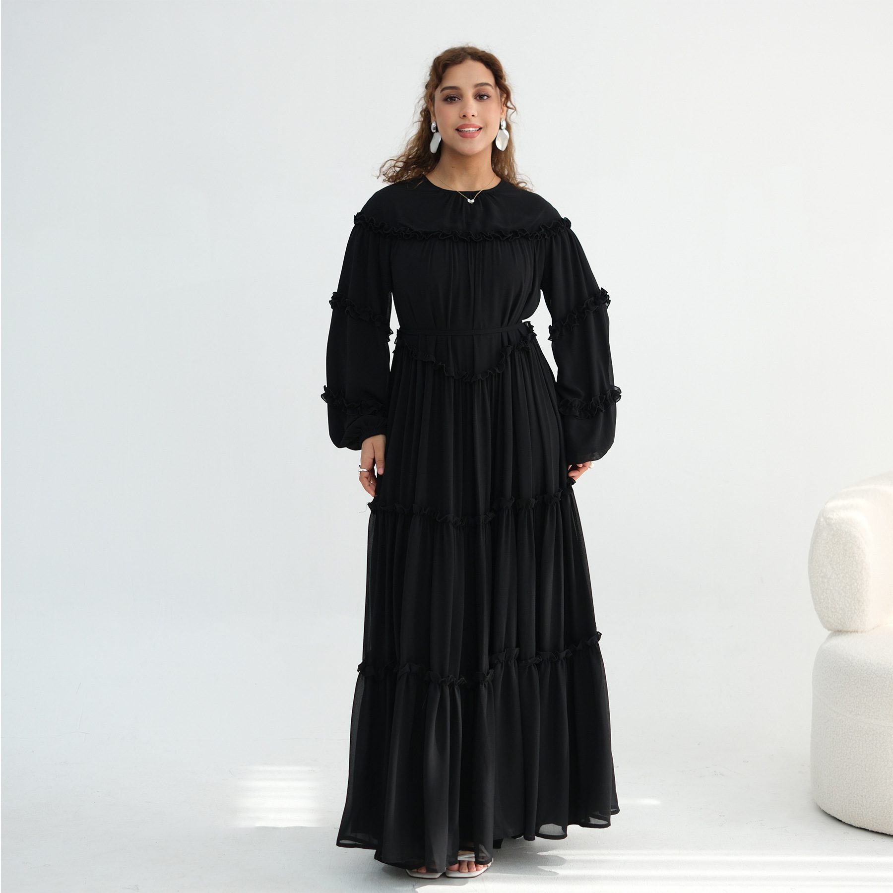 Colors: Black dress, pink dress, yellow dress, coffee-colored dress