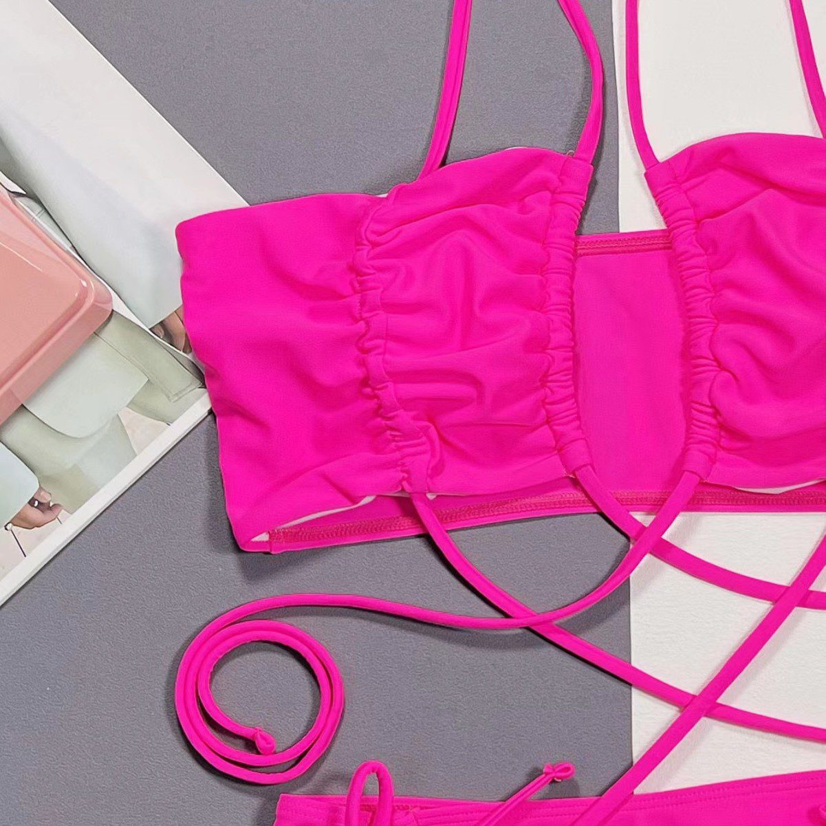 New Bikini Split Women’s Swimsuit Solid Color Lace-up Sexy