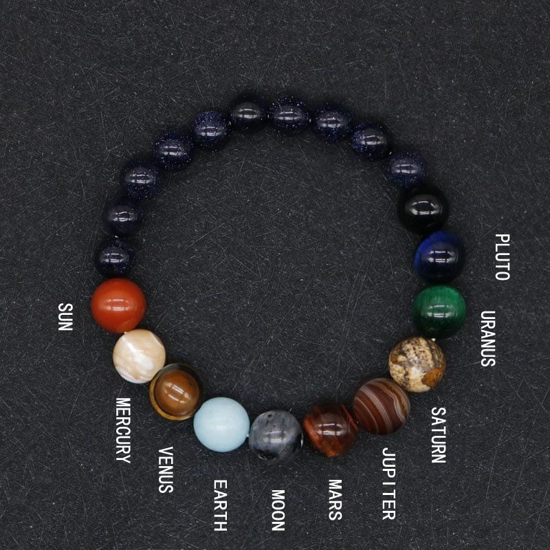 SIZE DIMENSIONS – This planet bracelet is made with elastic string and 8mm+10mm beads, the inner length of this bracelet is 6.25 inches. It is elastic so it is suitable for most people. This bracelet is unisex when you wear it, you are the sun, and all the eight planets revolve around you.