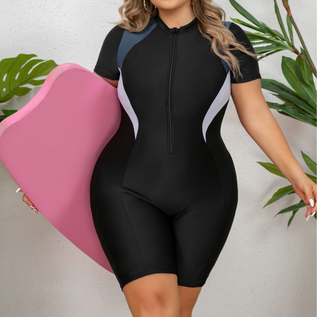 In StockStay active and stylish with this Plus Size One-Piece Zipper Sports Swimsuit, designed for women who love performance-ready swimwear with a flattering fit. Featuring a front zipper for easy wear and a sleek, athletic cut, this swimsuit offers both comfort and confidence—perfect for swimming, water aerobics, or beach workouts.