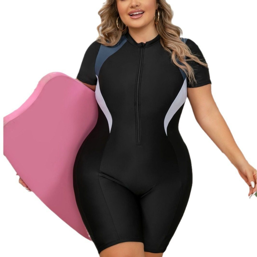 Plus Size One-piece Zipper Sports Swimsuit For Women