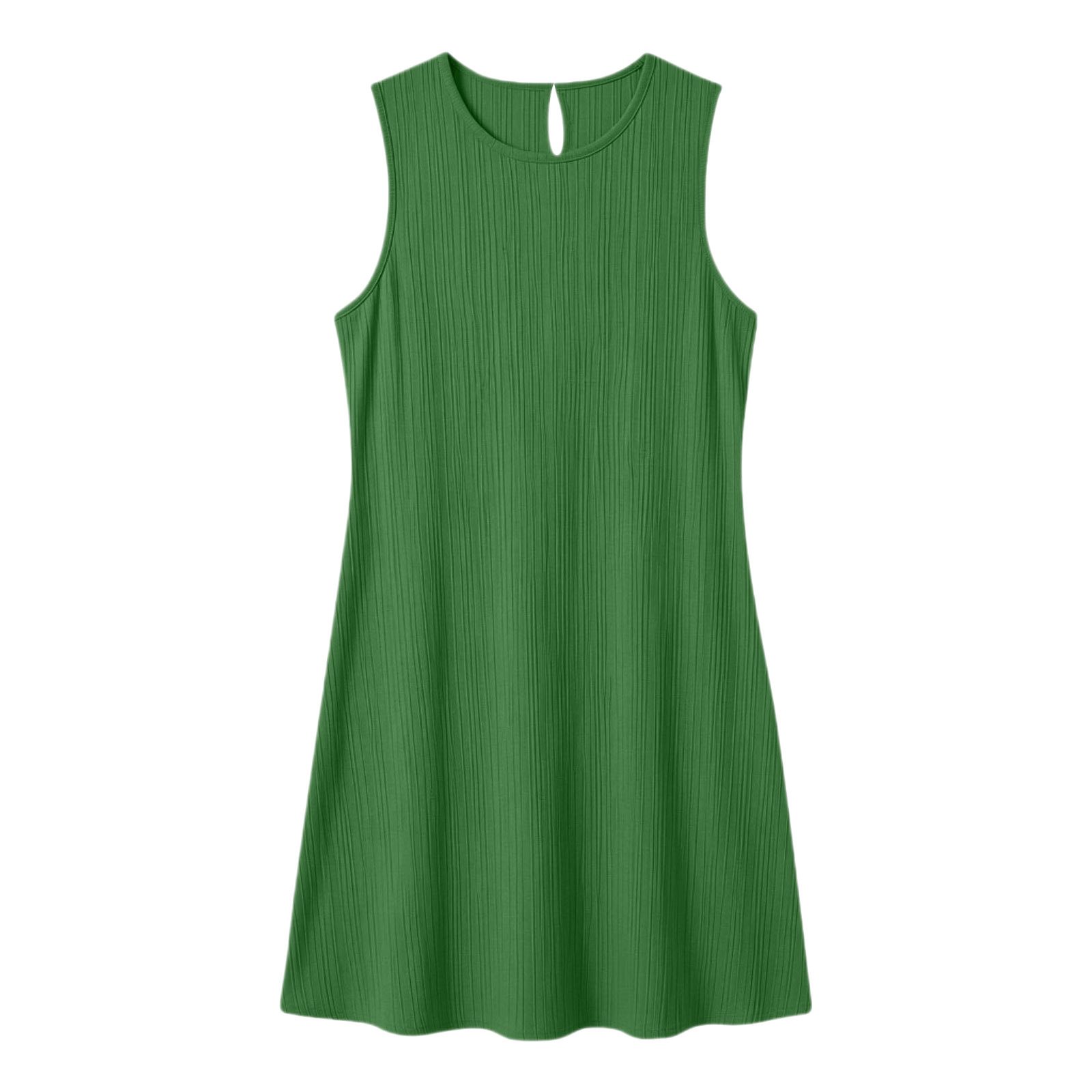 Features: Solid color, pleated details, wrinkle design, straight-leg cut, relaxed waist, sleeveless with round neck