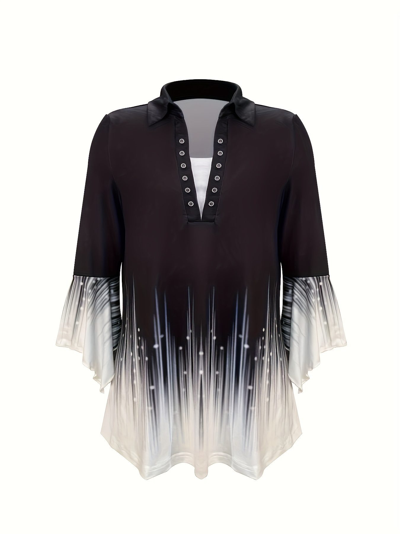 Spring And Autumn New Printed Lapel Three-quarter Sleeve T-shirt Irregular Cuff Button Top