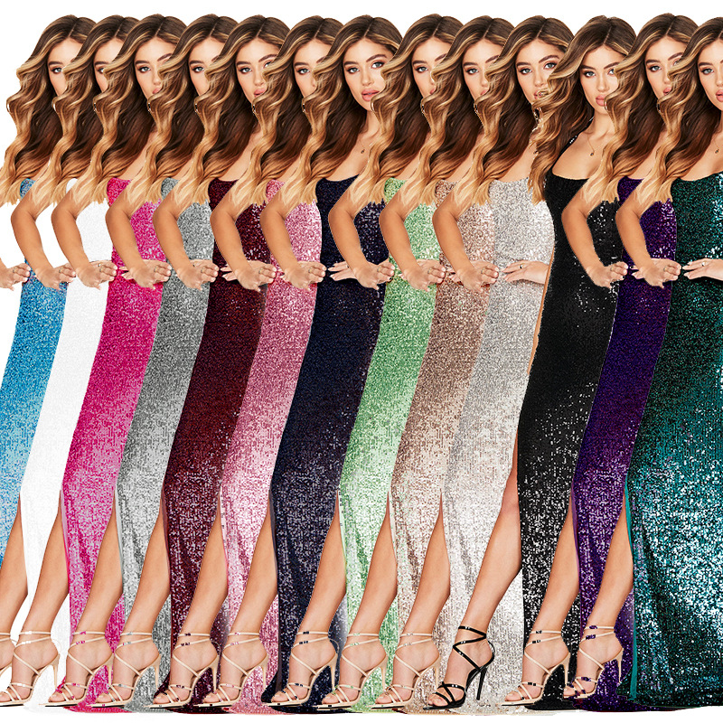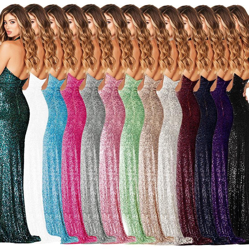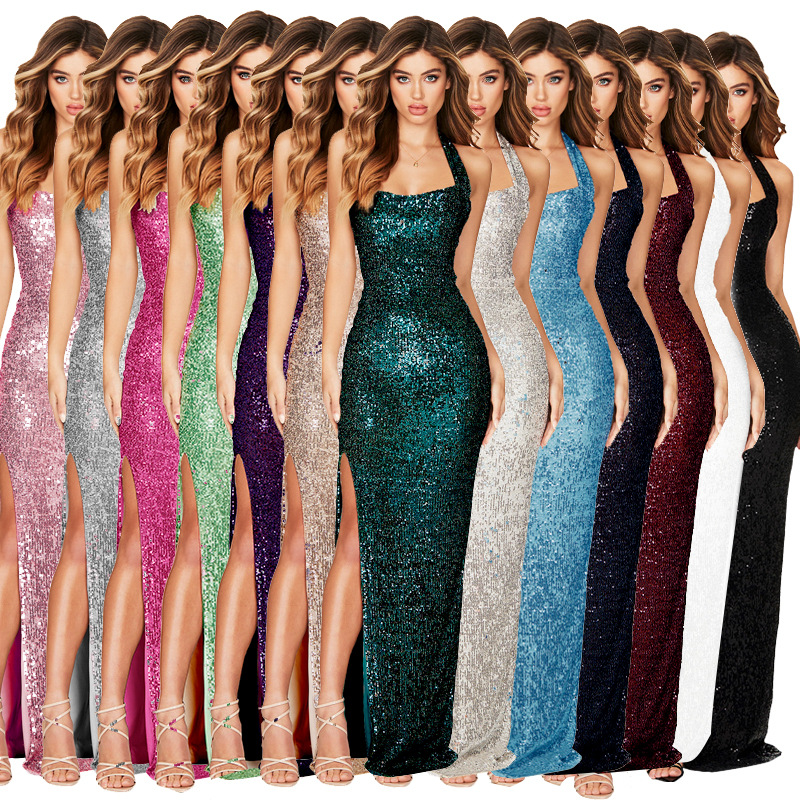 Popular elements: Sequins, beads, zipper, backless, halter neck, slit