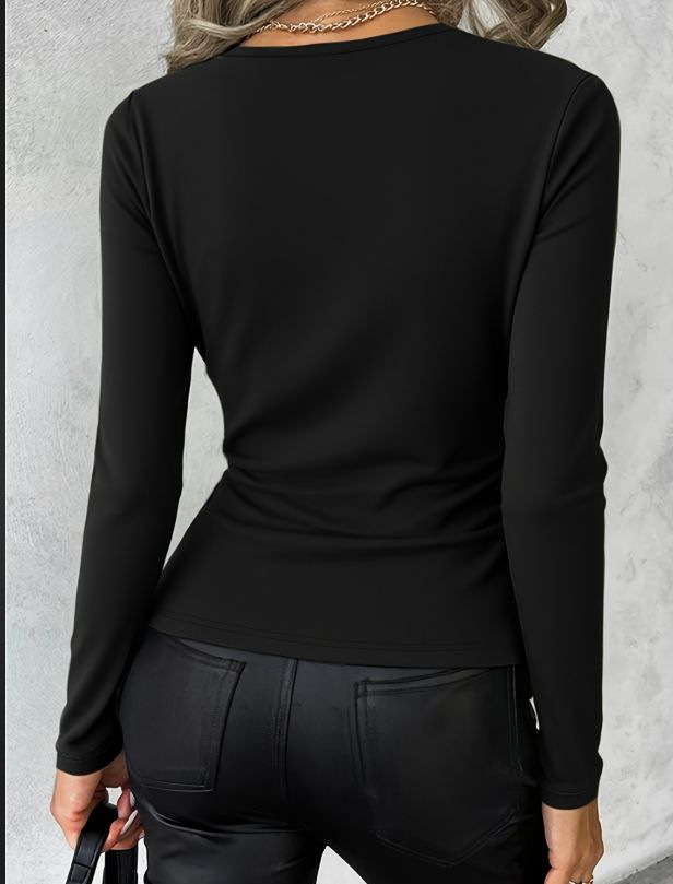 31 reviews for V-neck Metal Buckle Long Sleeve Slim Fit All-match Bottoming Shirt