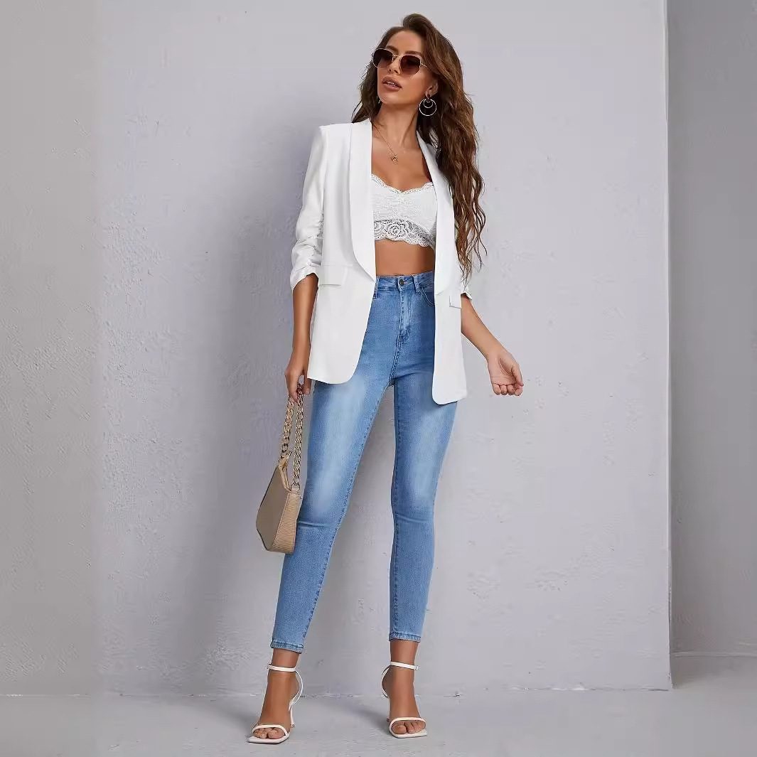 The corset detailing adds a bold and feminine twist, making it a perfect statement piece for both daytime and evening styling. Whether paired with fitted trousers, jeans, or a sleek skirt, this blazer delivers effortless sophistication and runway-inspired flair.