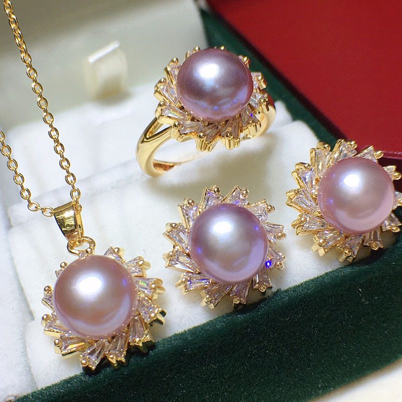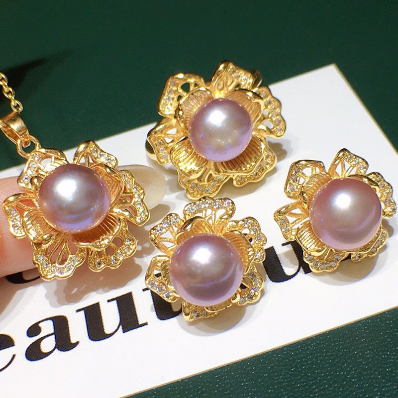 Color: gold three-dimensional pollen purple pearl suit no picture color, silver three-dimensional pollen purple pearl suit no picture color