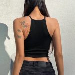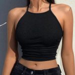 The U-neck design of the top is combined with a small elastic sling